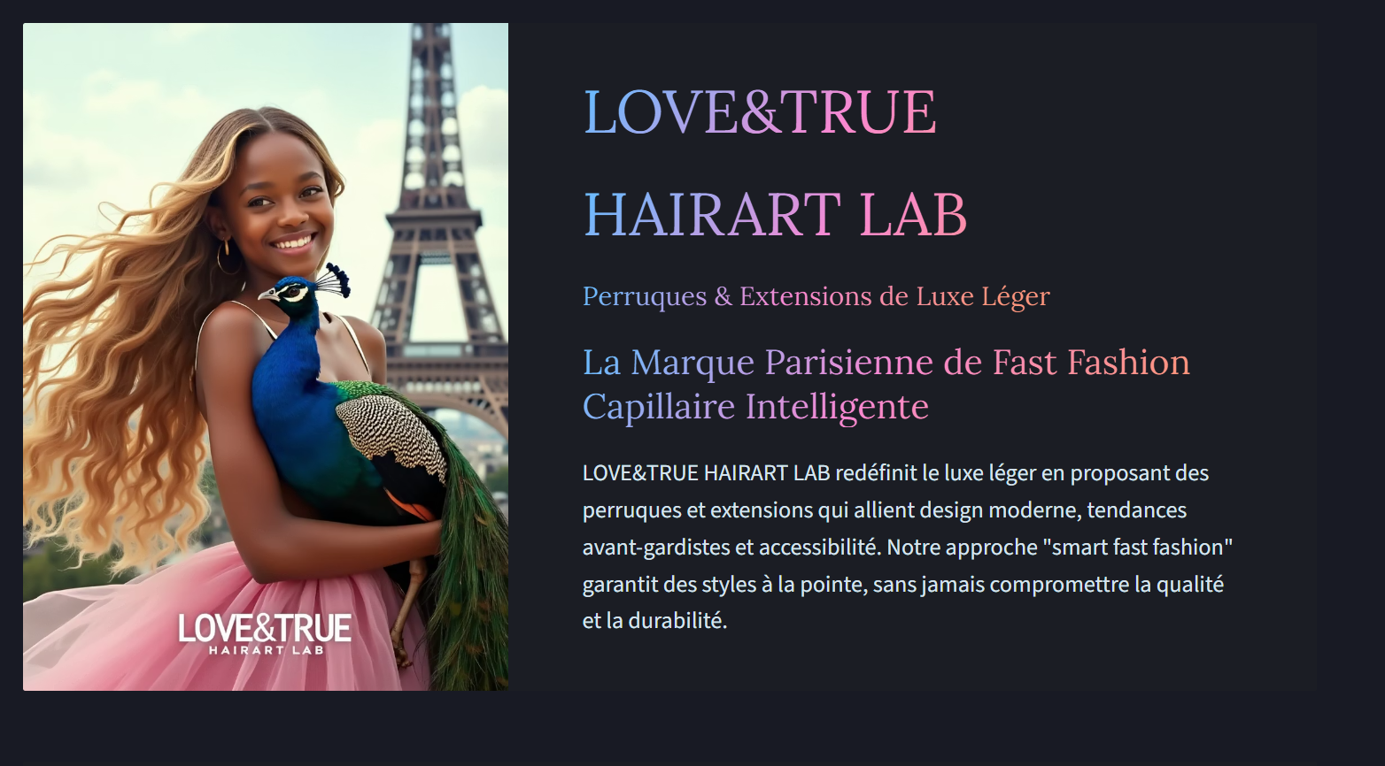 NAOMI marie l'élégance intemporelle de la haute couture française à la splendeur de cheveux humains de qualité supérieure. Elle est convaincue que chaque femme mérite une coiffure parfaite pour sublimer son style personnel et révéler sa confiance. Quelle que soit son origine, son âge ou la nature de ses cheveux, elle encourage chaque femme à oser des styles variés et à exprimer sa personnalité avec audace. Avec LOVE&TRUE, le luxe devient une réalité accessible, et le monde, un espace où la beauté et la confiance s'épanouissent sans limite.